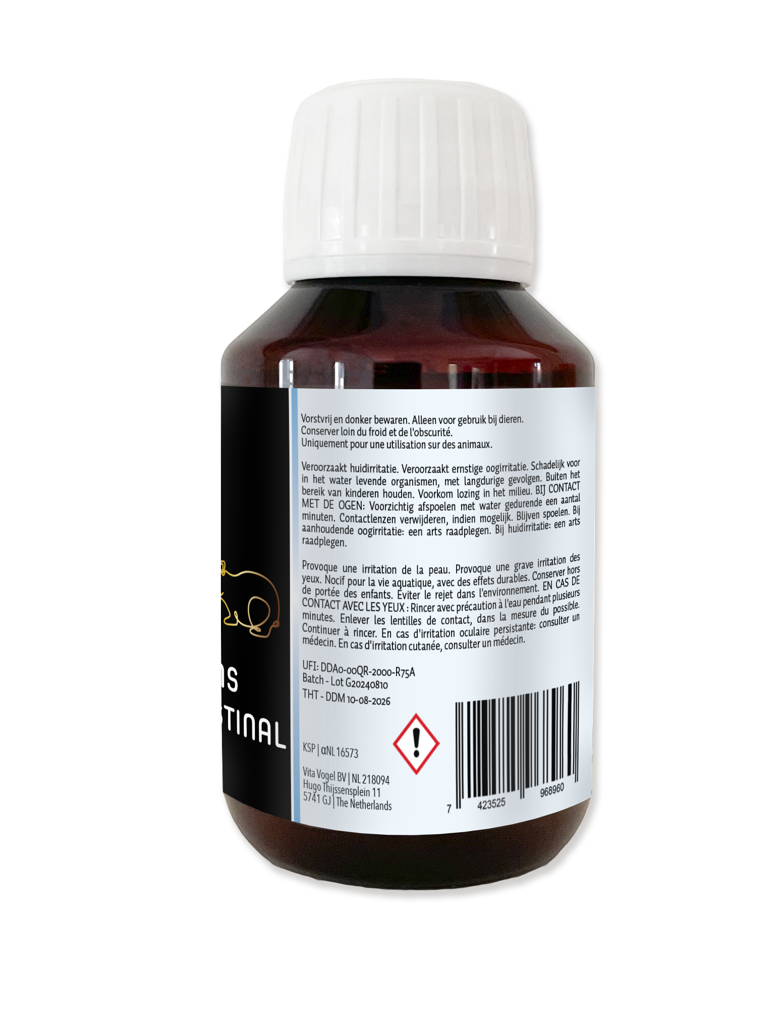 Invicta Intestinal Balance est un acide liquide basé sur une combinaison synergique d'acides organiques tamponnés et d'oligo-éléments cuivre et zinc sous forme de chélate. Le produit est utilisé avec succès pour une bonne fonction intestinale et pour favoriser la digestion des protéines dans le tractus gastro-intestinal du lapin ou du rongeur. La baisse du pH dans le tractus gastro-intestinal contribue à l’inhibition des bactéries potentiellement pathogènes, également dans l’eau potable.