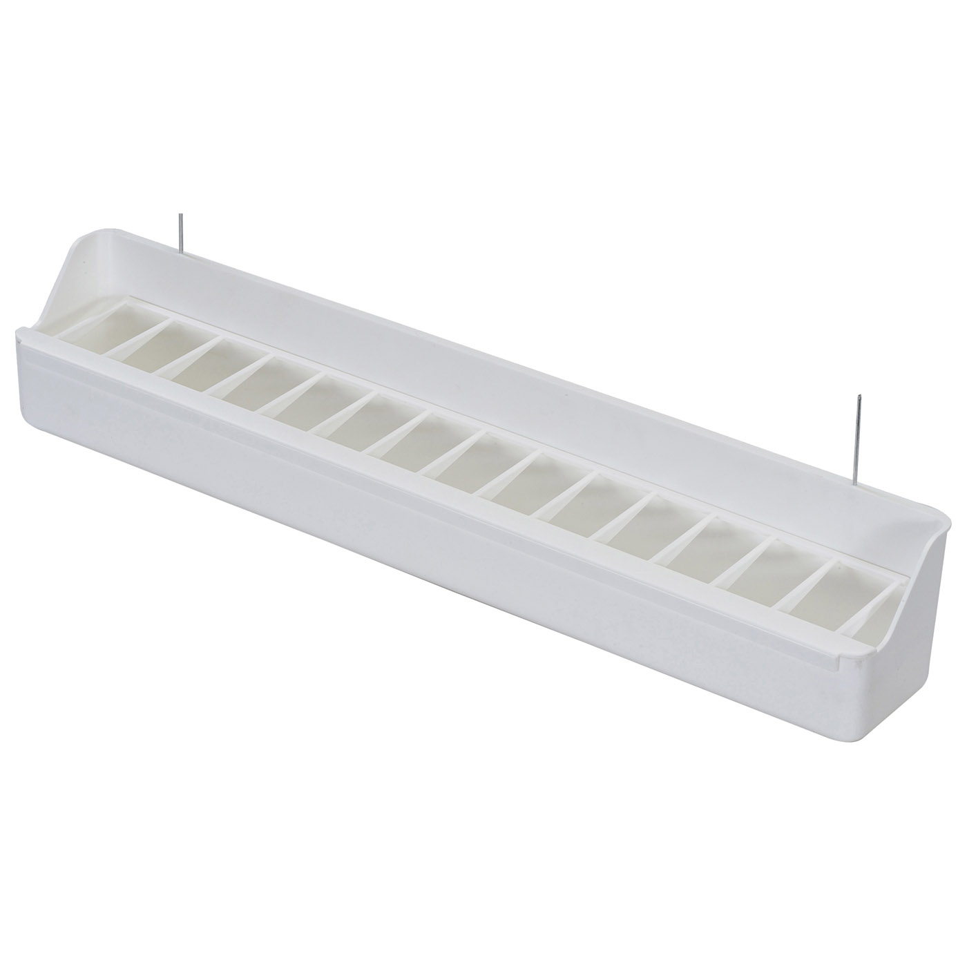 Met een breedte van 40 cm is deze hangbak ruim genoeg om voldoende voedsel en water te bevatten. waardoor uw siervogels altijd toegang hebben tot verse voeding en hydratatie. De stevige metalen haakjes zorgen voor een veilige bevestiging aan de volière. zodat u zich geen zorgen hoeft te maken over morsen of omvallen.